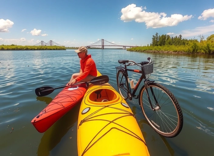 Auf der einen Seite, die Natur auf dem Land, während Du auf dem Sattel deines Fahrrades sitzt und auf der anderen Seite auf dem Wasser, während Du in einem Kajak (Einer- oder Doppelkajak) die Flüsse der Region erkundest.